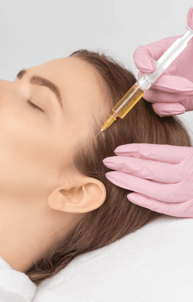 PRP therapy uses your body’s own platelet-rich plasma to stimulate hair growth and strengthen existing follicles. This natural treatment delivers growth factors directly to the scalp, improving circulation, density, and overall hair health.